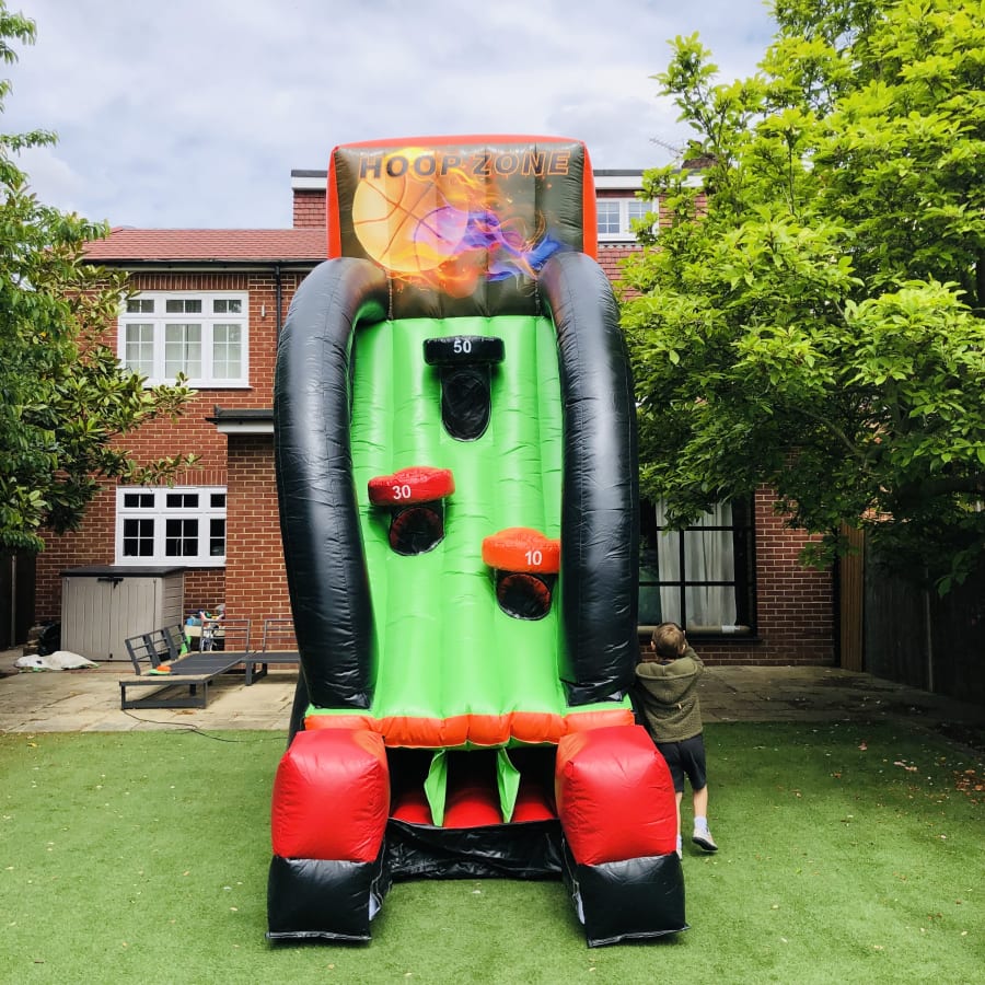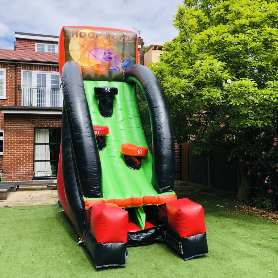 Basketball Inflatable game - 7ft W x 14ft L x 14ft H. New to Bexley Castles, competitors compete to see who can score a basket with each basket worth more points the higher they are. Balls supplied.