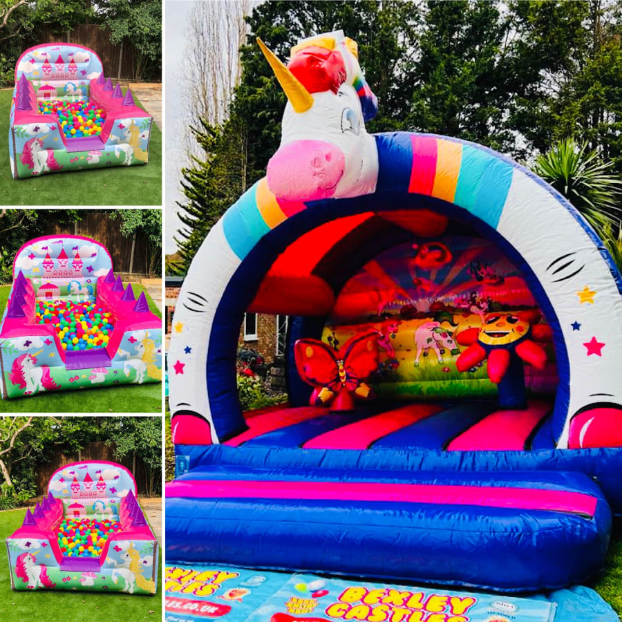 Unicorn Bouncy Castle and Air Juggler hire package in Bexleyheath, Welling, Sidcup, Eltham, Dartford and Bexley