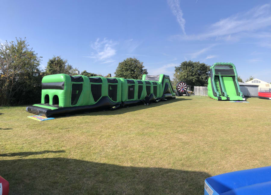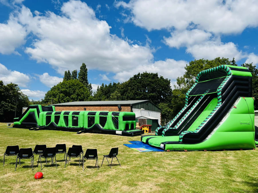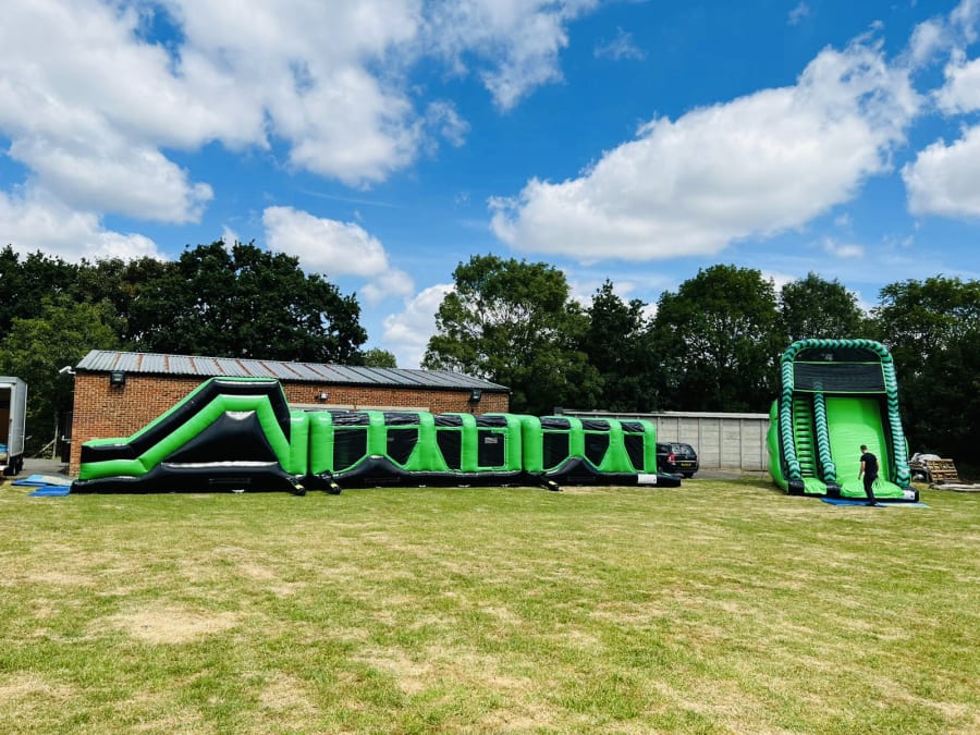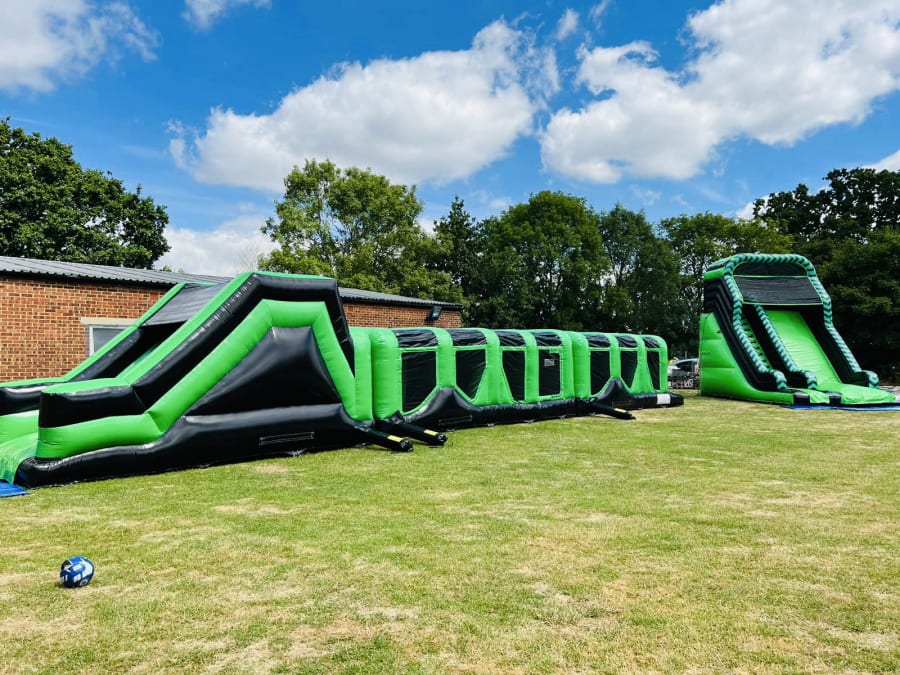 A good option for school inflatable days or large private events combining the thrill of a large slide with the challenge of our ultimate 70ft Assault Course.