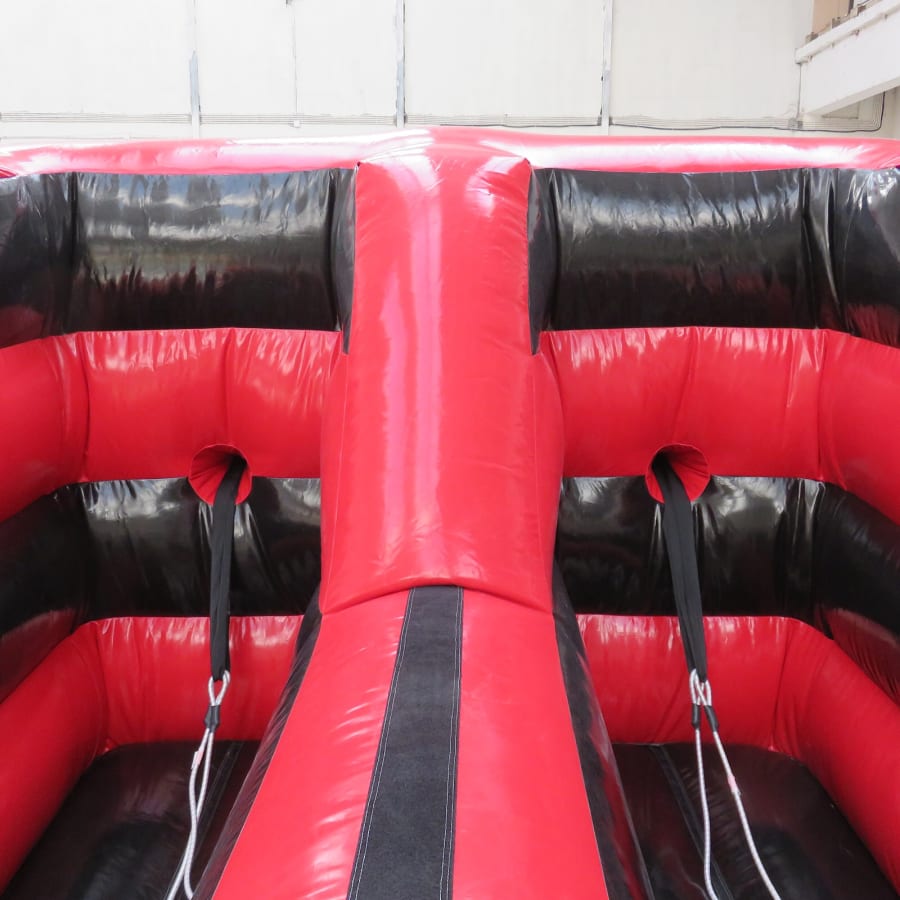 Who can be the fastest one to pass through?! These red and black colour coded assault courses are a challenging feat whereby contestants enter one end, navigate the up and overs, bish bashes, foam steps with handle assist and then descend the large slide at the exit where we will provide landing mats.