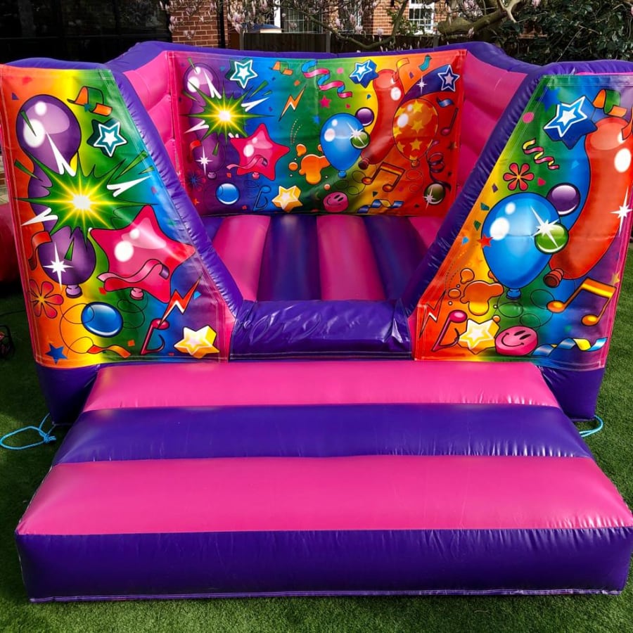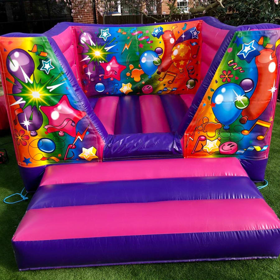 New in for 2020/21 we have this colour coded party theme low height bouncy castle. The concept behind this design is its ability to fit into any indoor venue as well as its suitability for outdoor hire. The low height design makes it a flexible choice for venues due to its suitability for indoor hire, this unit stands at only 7ft high. There are also lots of party themed products in out party range whereby there are options to mix and match them all.