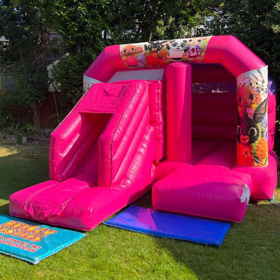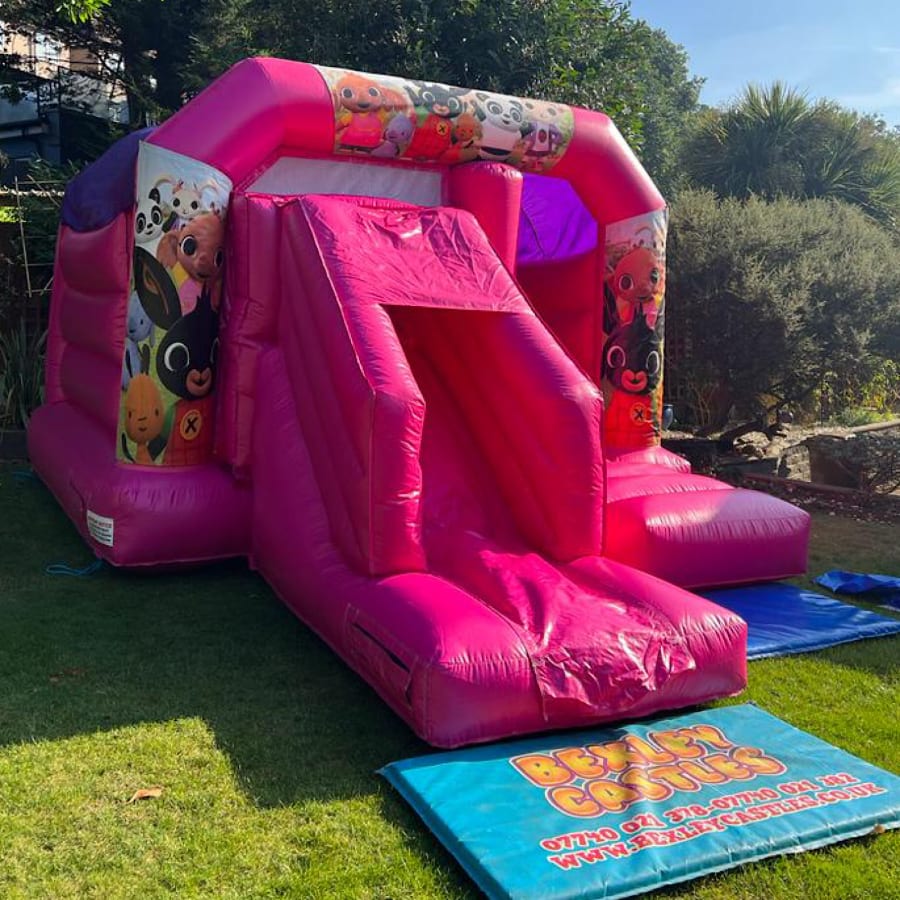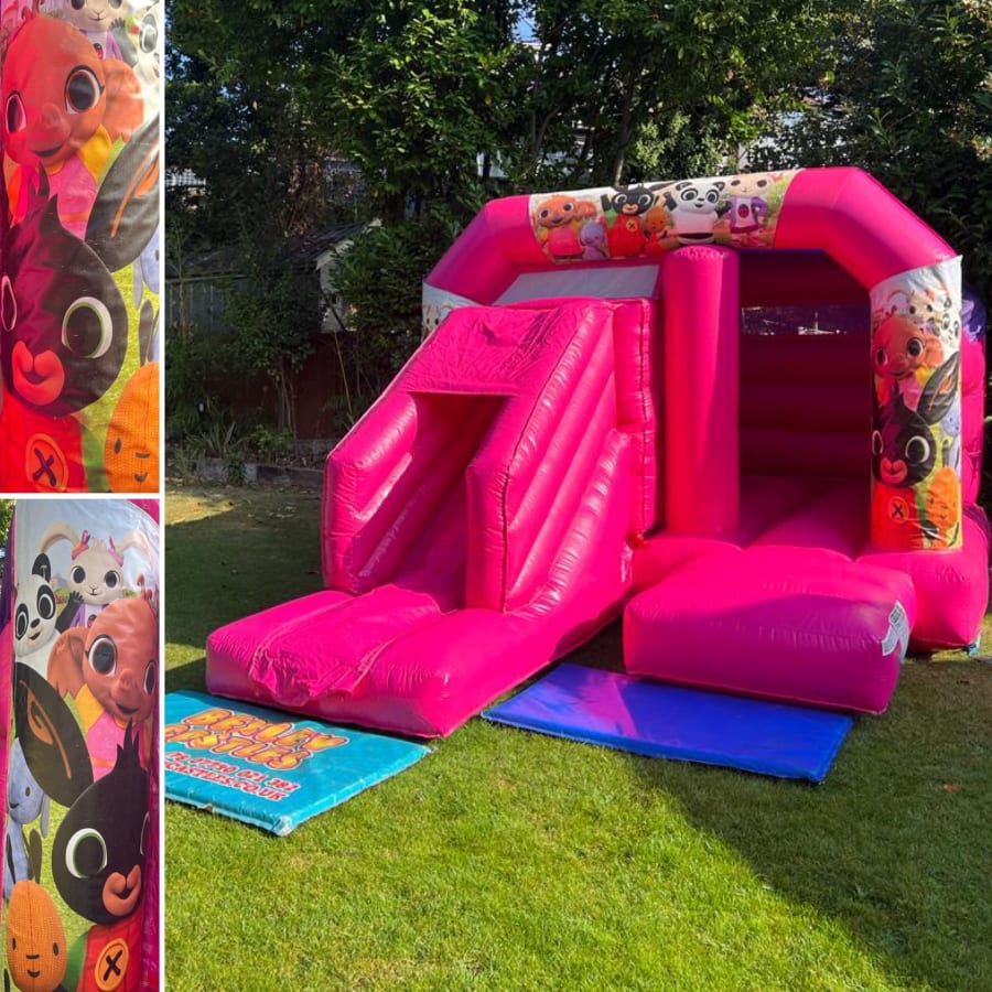Bing and his friends have been added to our expanding bounce n slide inflatable range. We find these are great as you get the best combination of bouncing area along with a 5ft slide to the front. This Bing inspired inflatable has lots of safety features to ensure your little ones maximum protection and we provide a soft mat for landing.