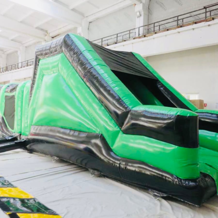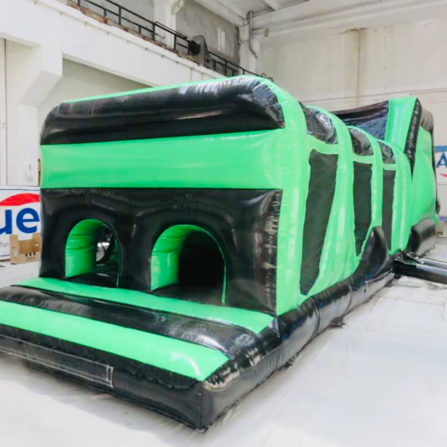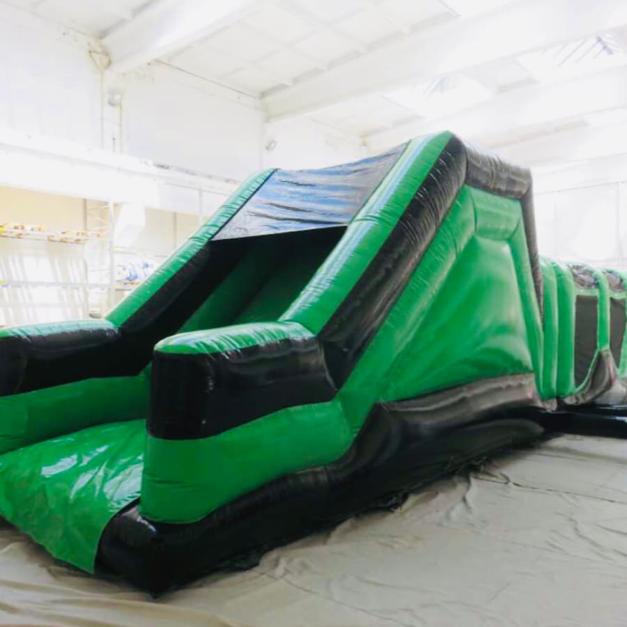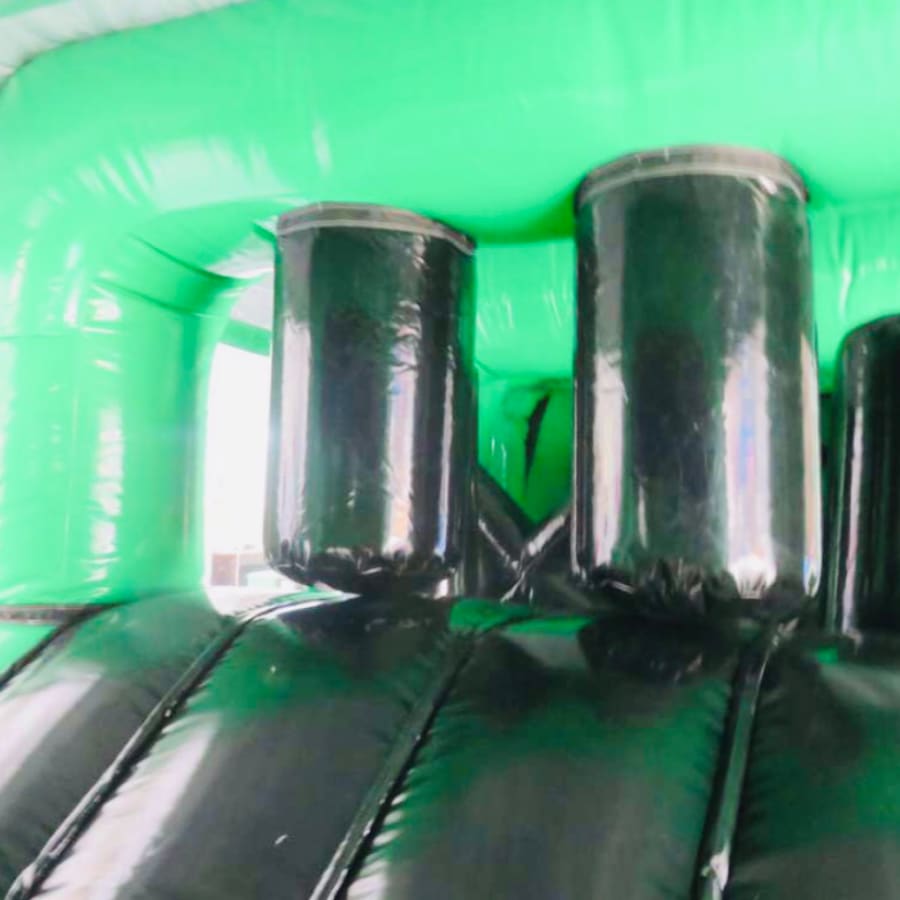 For hire is this incredible Energy Assault Course! Purpose built for all ages, children through to adults, so truly a family unit. Netted mesh side windows to see in and out of. Safety mats included as well as a sewn in cover the full length of the inflatable.