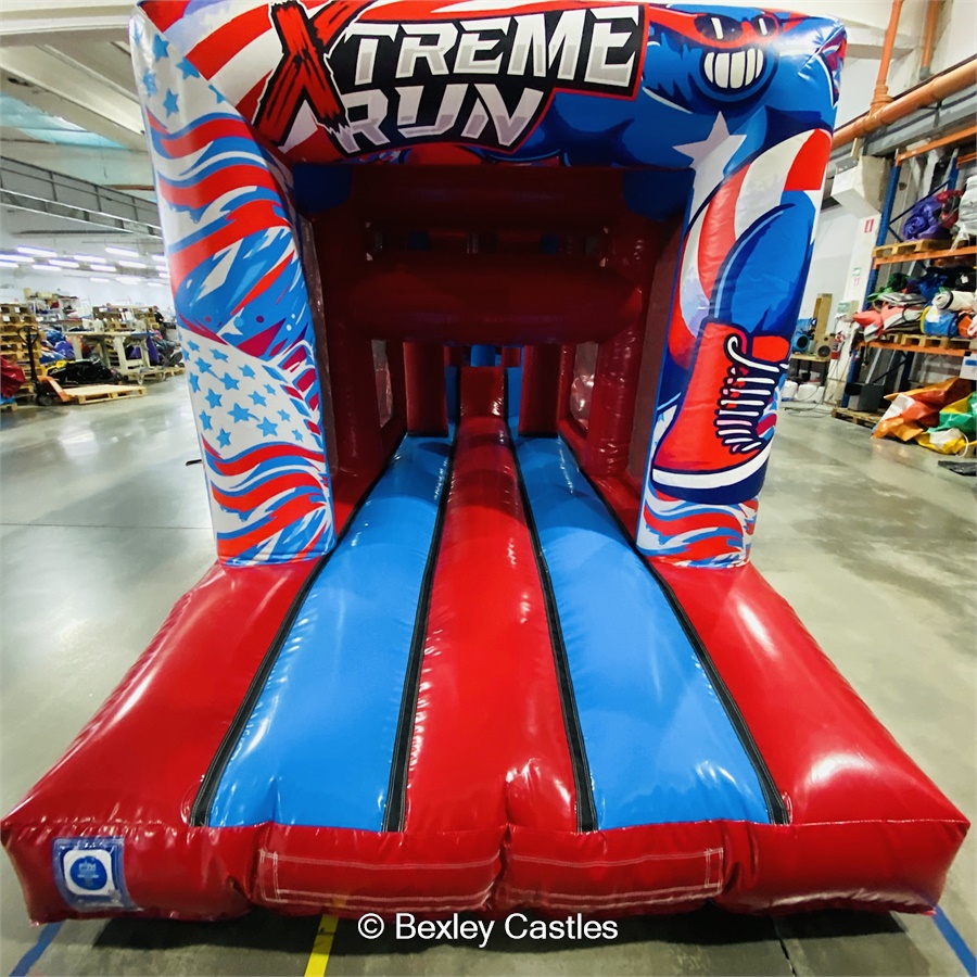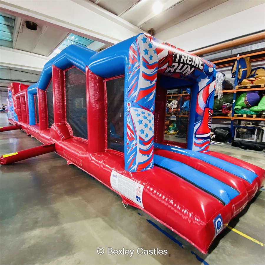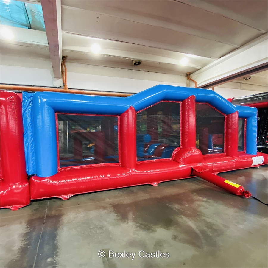 New at Bexley Castles is this 60ft XTREME FUN RUN designed in two connected sections in a Blue and Red colour combination.