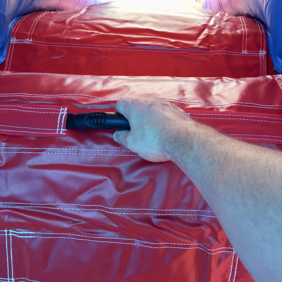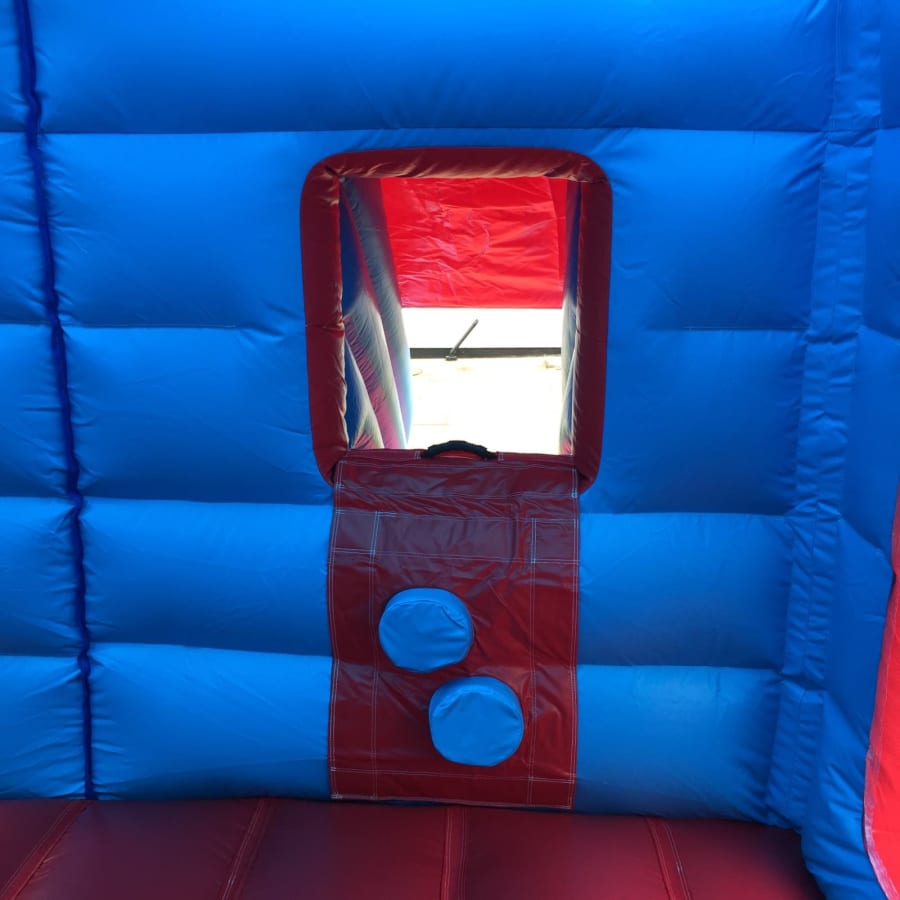 The entrance to the slide includes foam steps and a pull up handle to assist users. Safety mats will be placed at the exit for extra comfort. Manufacturing guidelines recommend this unit for 11 years and under and it is definitely a good choice for indoor hall hire due to its low height which avoids most ceilings and hanging lights.