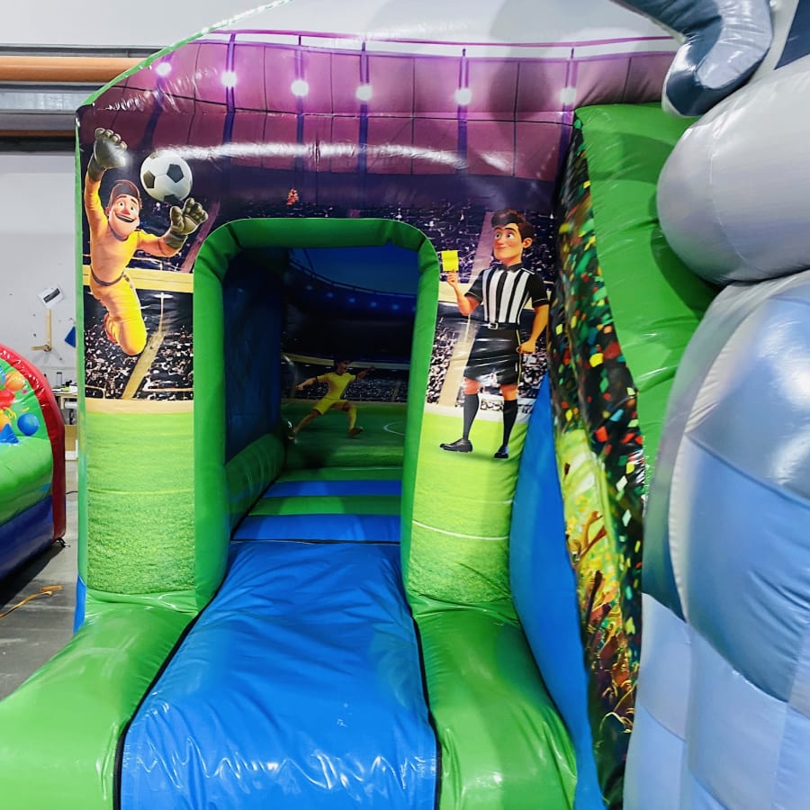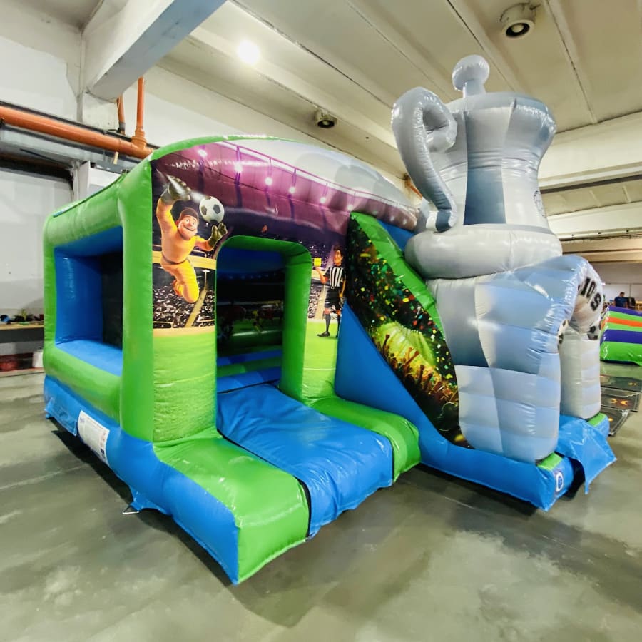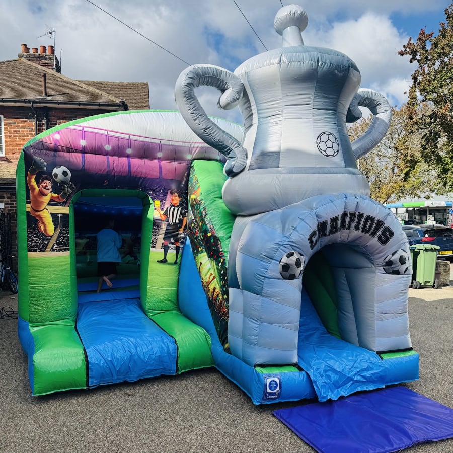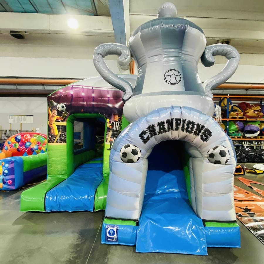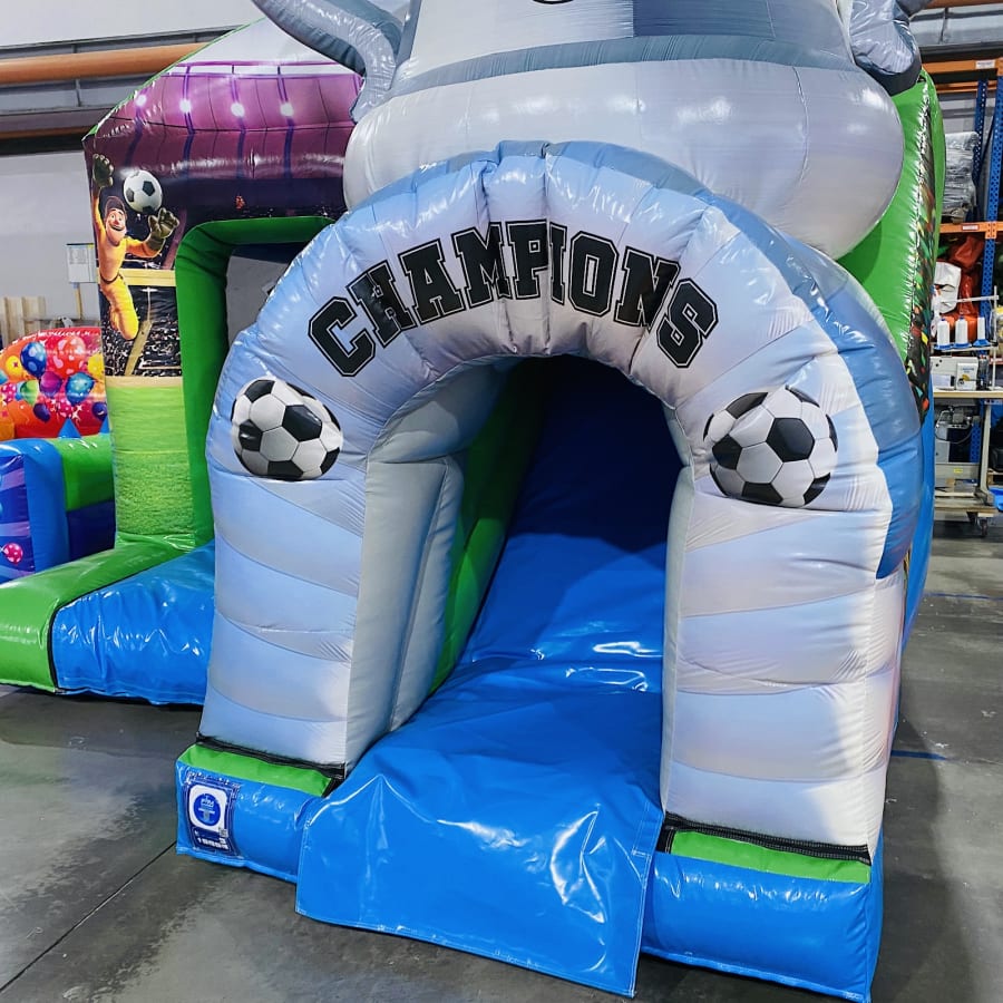 Are you world cup ready? We are with this fantastic new football themed bounce n slide inclusive of 3D trophy and slide tunnel which stands out from the crowd!