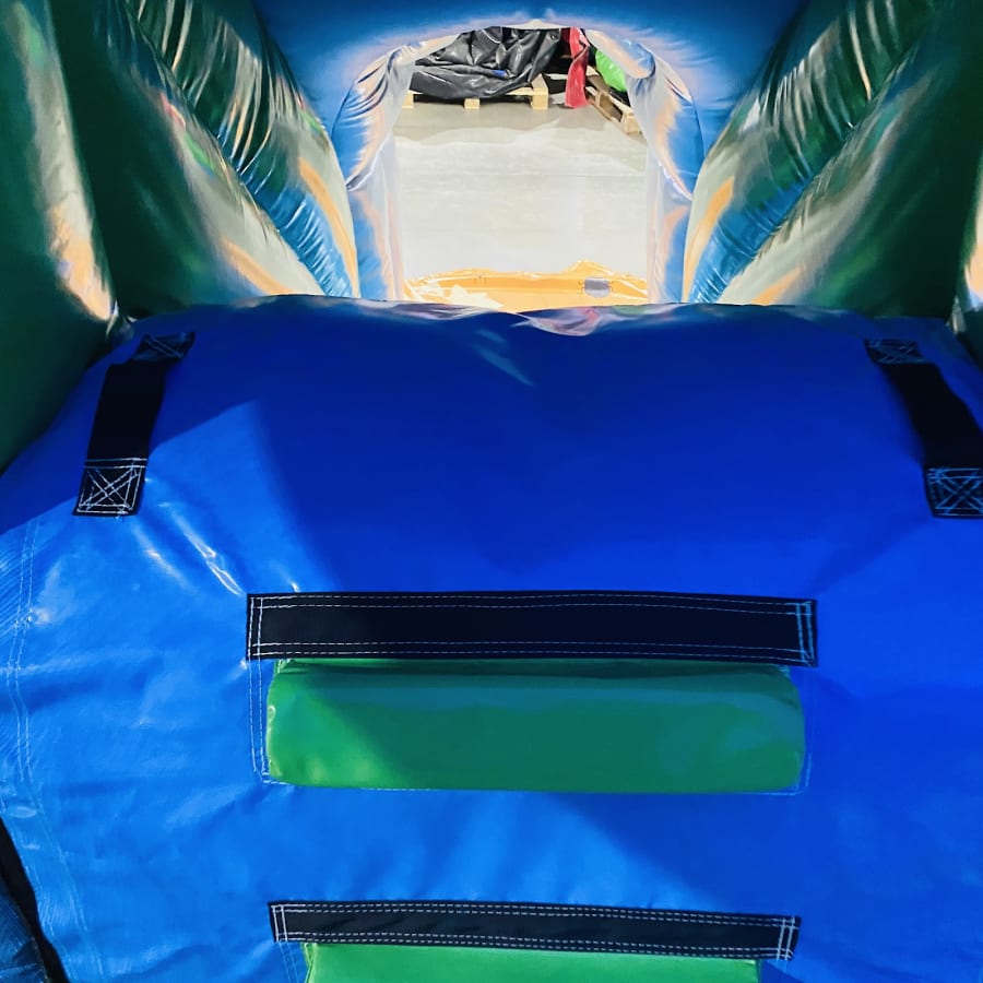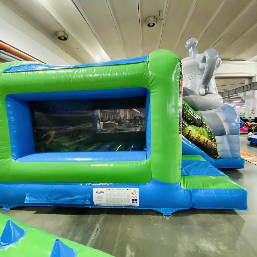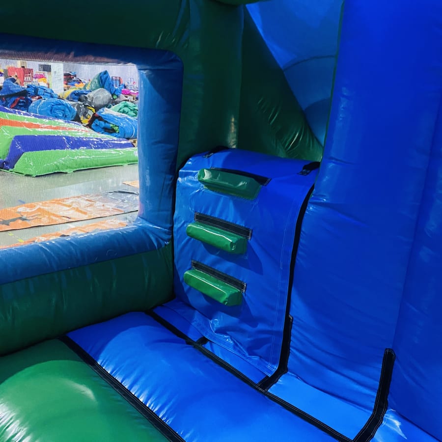 A brand new design this inflatable, ideal for a variety of party events this unit combines a 5ft front slide with slip sheet whilst offering a large bouncing area with netted sides for visibility.
