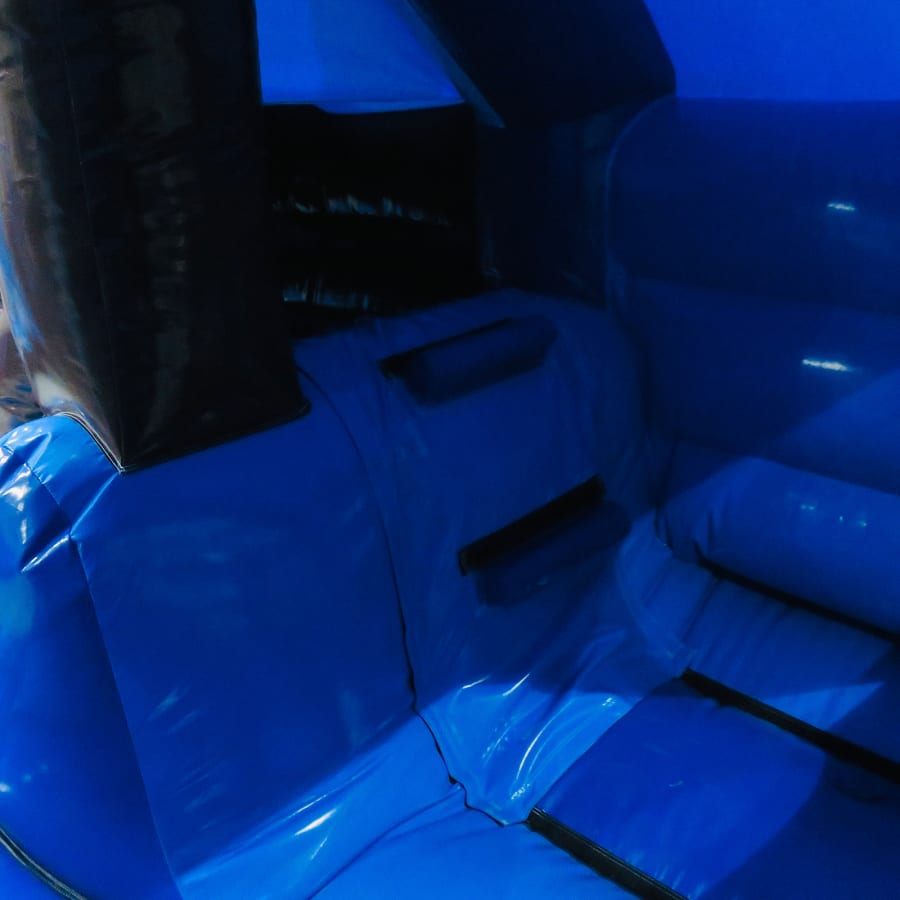 - Combination bounce and slide unit: bounce area plus a 5ft slide exit climb with handle.