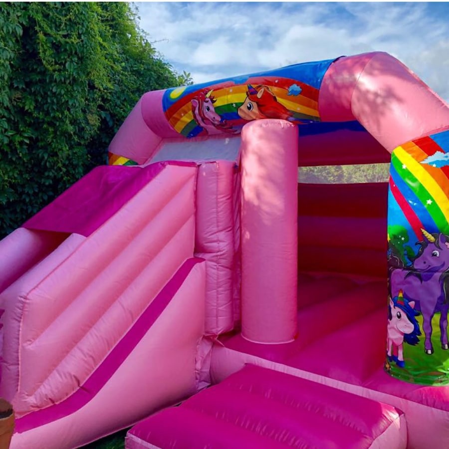 We have added unicorn and rainbow theme to our growing inflatable range. We find these are great as you get the best combination of bouncing area along with a 5ft slide to the front. This unicorn inspired inflatable has lots of safety features to ensure your little ones maximum protection and we provide a soft mat for landing.