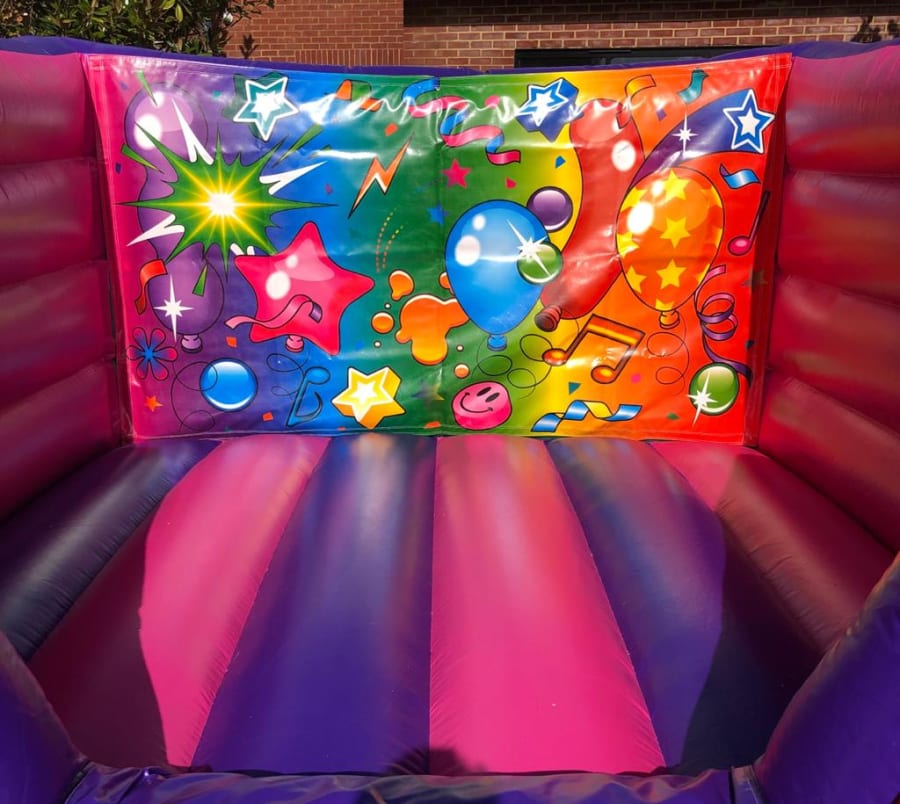 New in for 2020/21 we have this colour coded party theme low height bouncy castle. The concept behind this design is its ability to fit into any indoor venue as well as its suitability for outdoor hire. The low height design makes it a flexible choice for venues due to its suitability for indoor hire, this unit stands at only 7ft high. There are also lots of party themed products in out party range whereby there are options to mix and match them all.