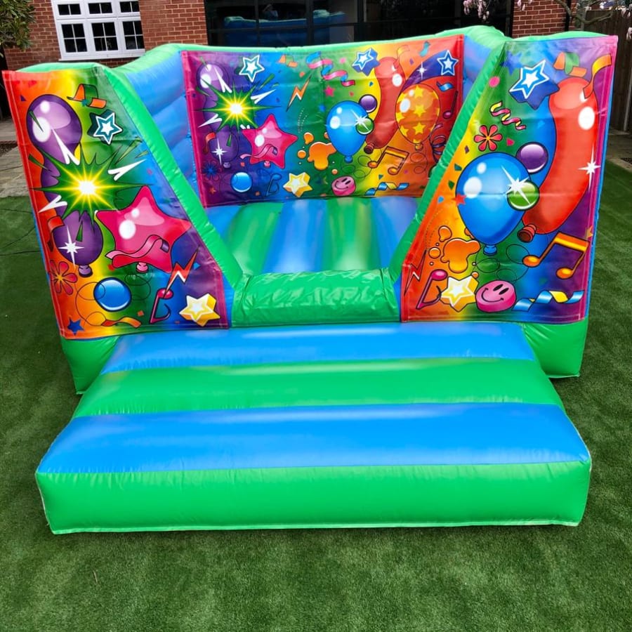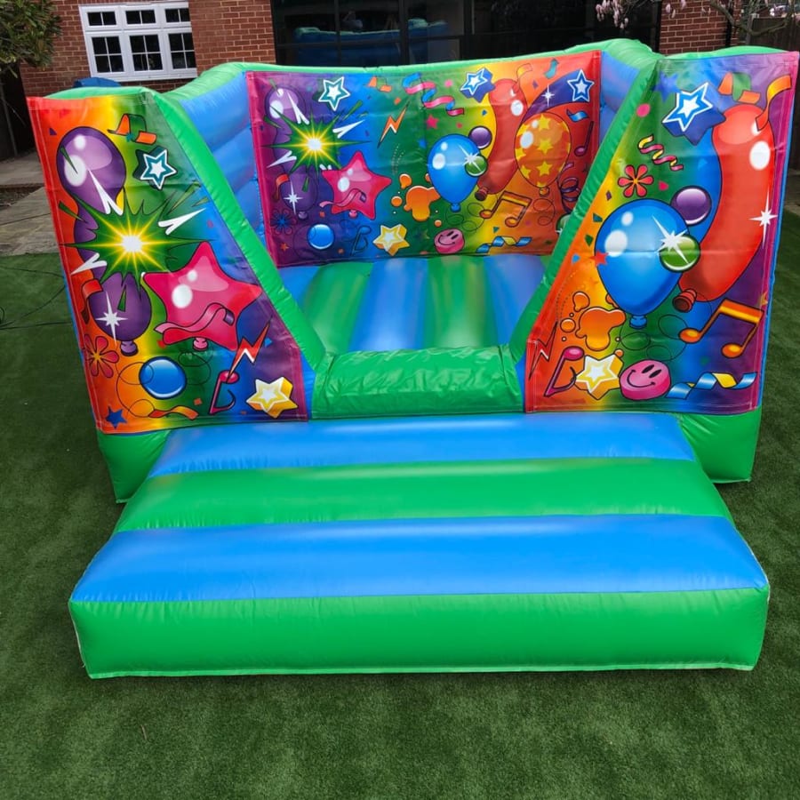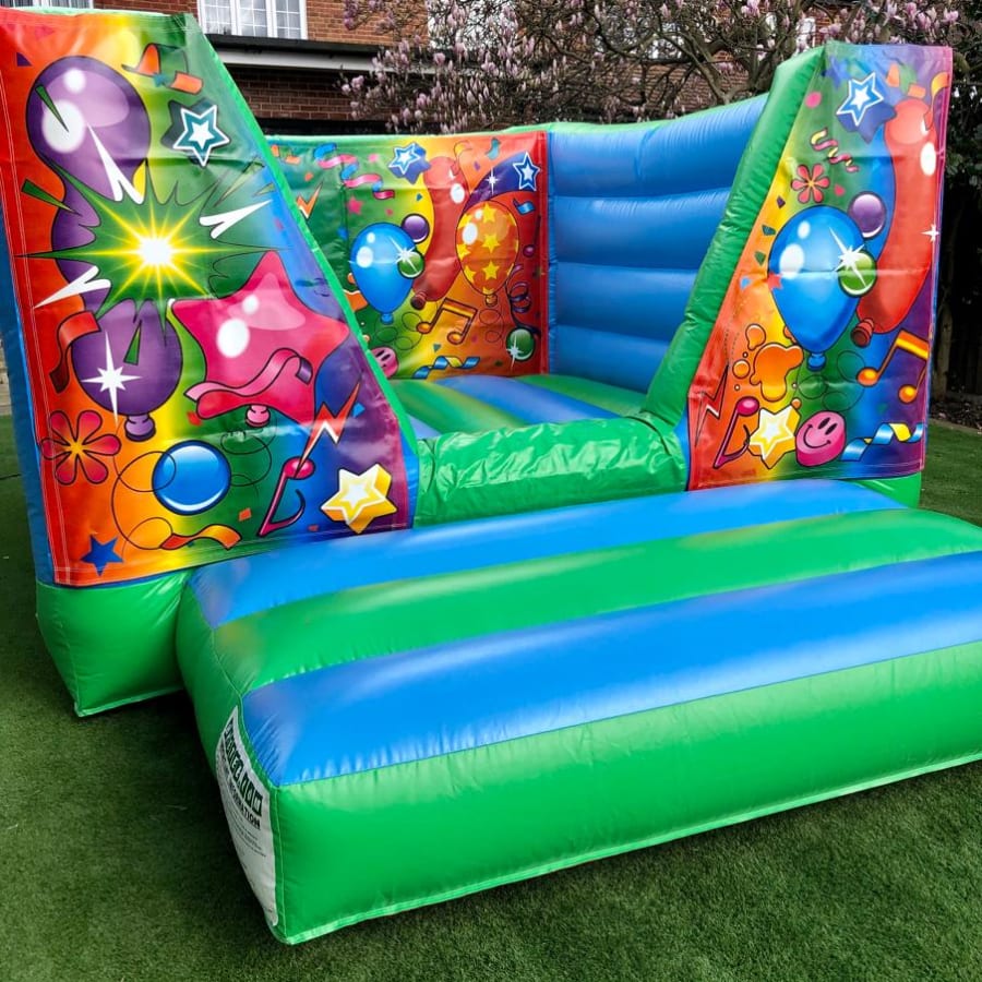 A superb multi colour coded party theme low height bouncy castle which is great for indoor hire. No need to worry about venue size or hanging lights as this unit has been designed to fit into almost any indoor or outdoor space. We stock a variety of party themed products in out party range whereby there are various package options to mix and match or call us if the combinations not listed.