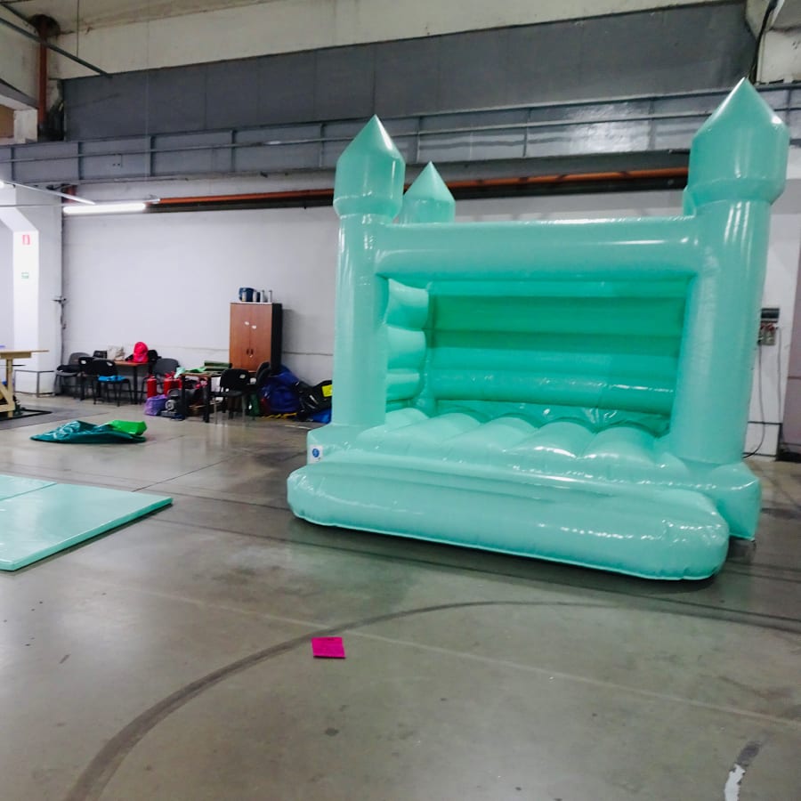 Brand new we have this premium pastel mint open roofed turret bouncy castle.