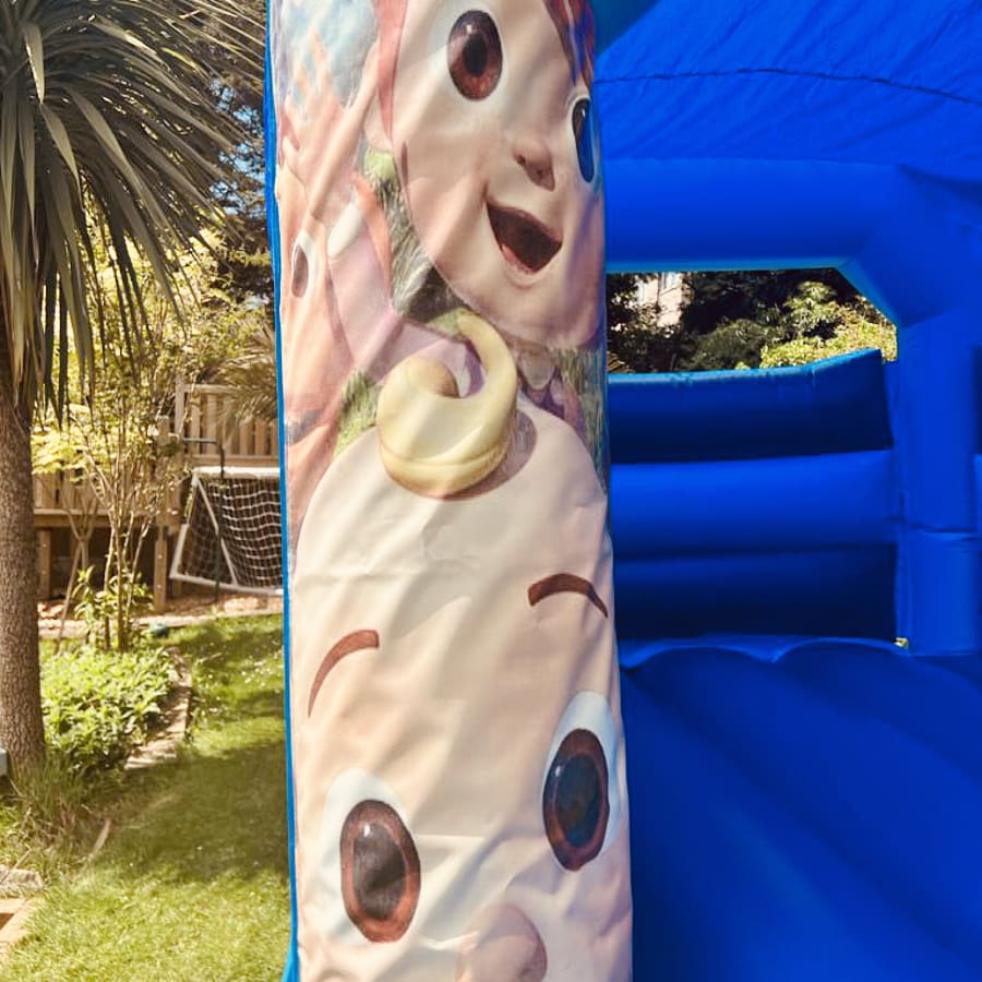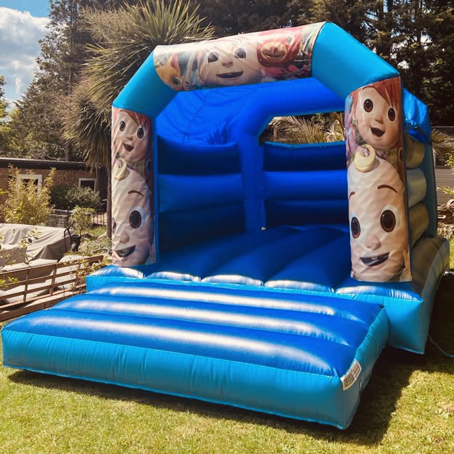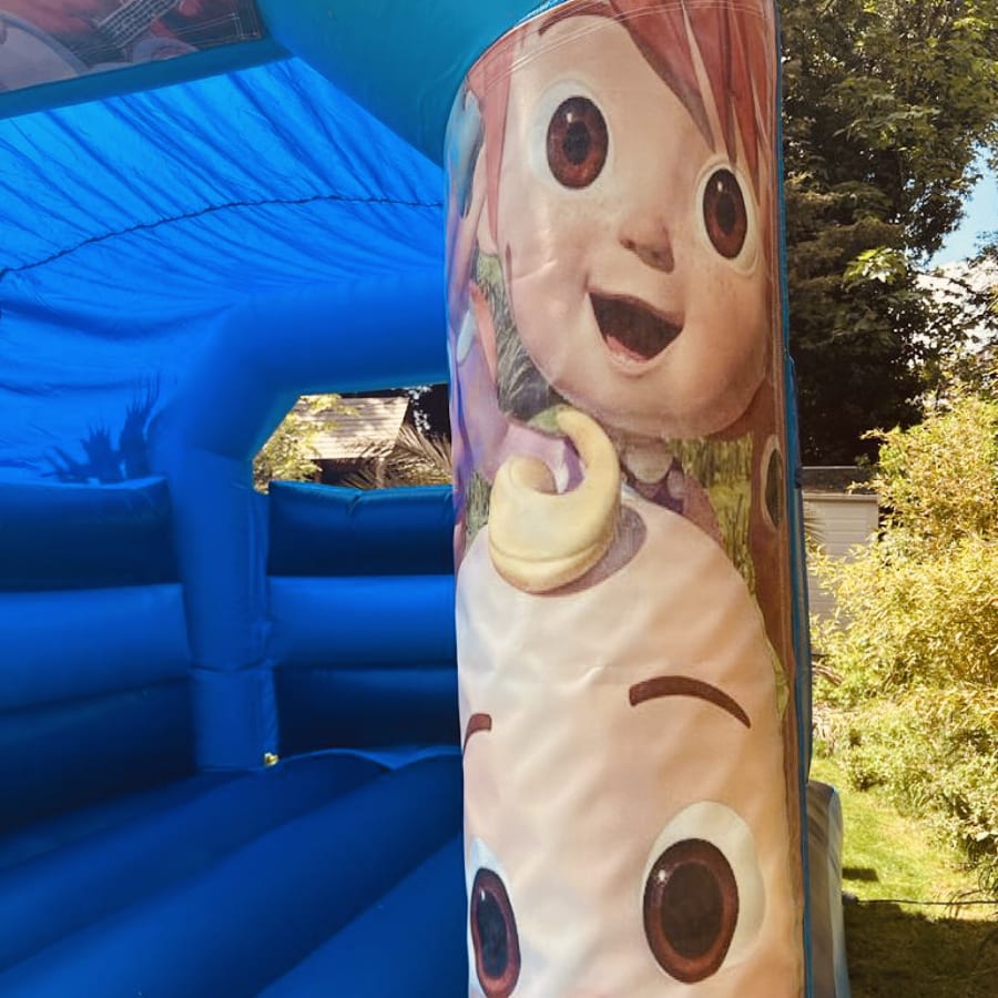 Book bouncy castle hire Cocomelon Blue Bouncy Castle 12ft x 15ft x 10ft in Bexley. Invite JJ, YoYo and TomTom to your party with this colourful, themed inflatable. Perfect for birthdays, playdates and family events. Spacious, safe and weather-ready with a built-in shower/sun cover. 🎉