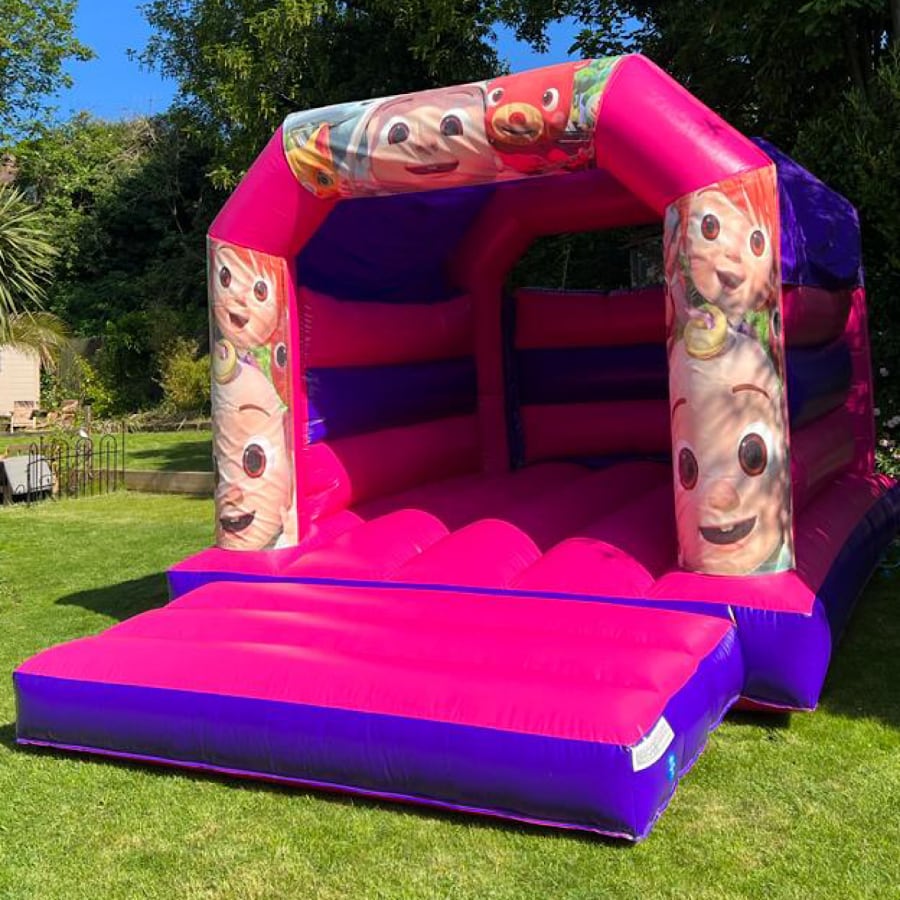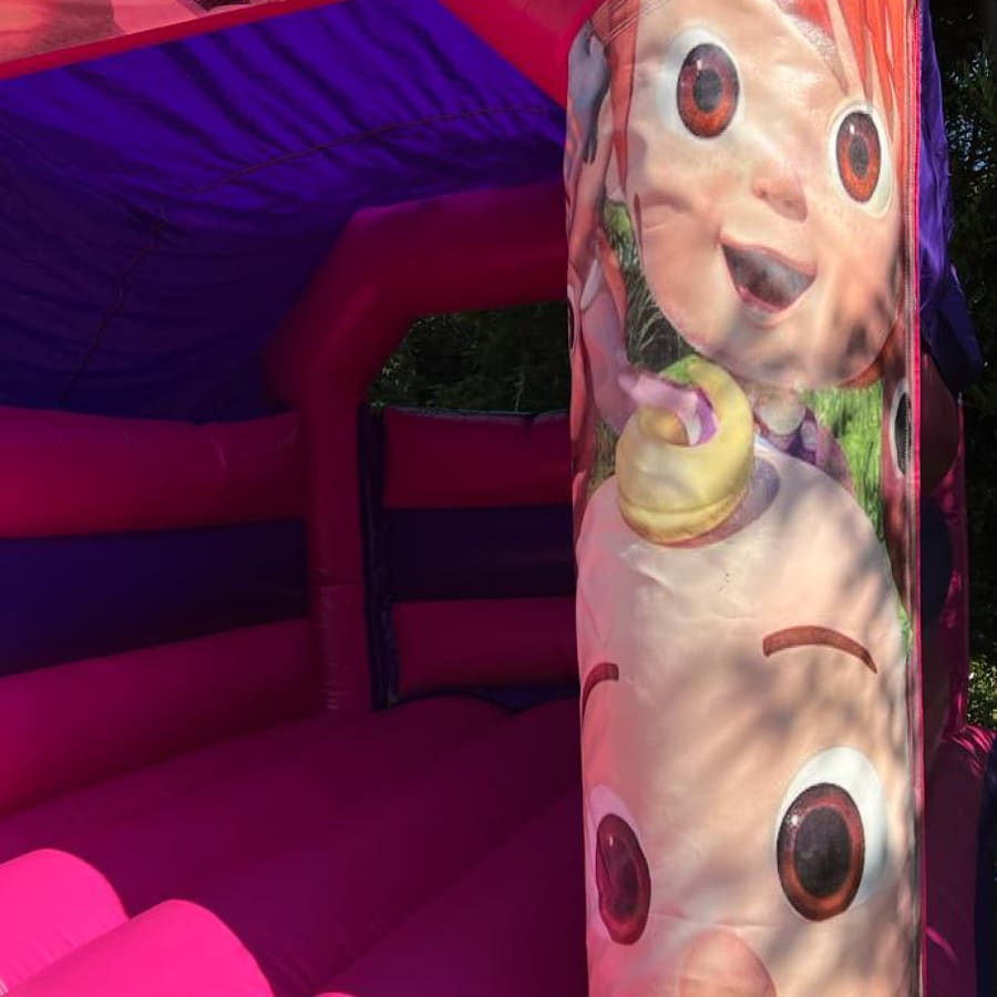 bouncy castle hire Cocomelon Pink Bouncy Castle 12ft x 15ft x 10ft in Bexleyheath Welling Eltham Sidcup Dartford Erith — Bring JJ, YoYo and TomTom to your next kids' party. This bright, pink Cocomelon-themed bouncy castle measures 12ft W x 15ft L x 10ft H. It’s built for fun, safety, and easy setup. Perfect for birthdays, community events and playdates. ๐๐