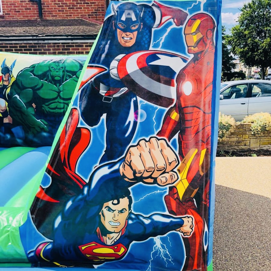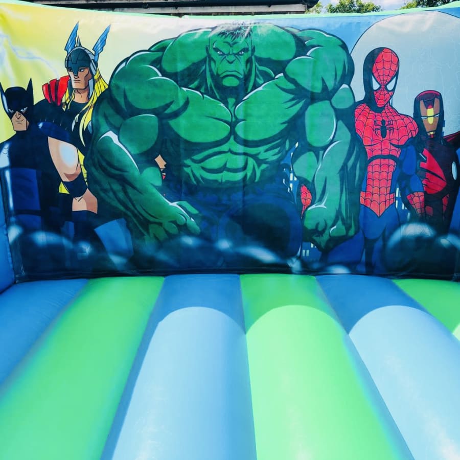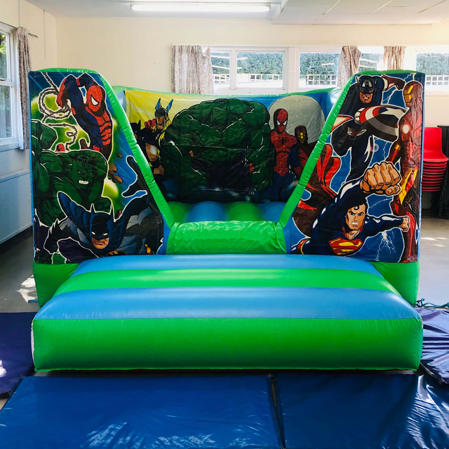 Despite its low height it is just as much fun as a standard bouncy castle. It comes complete with deluxe artwork of all the favourite superhero's - Thor, Superman or Captain American - they are all coming to the party!