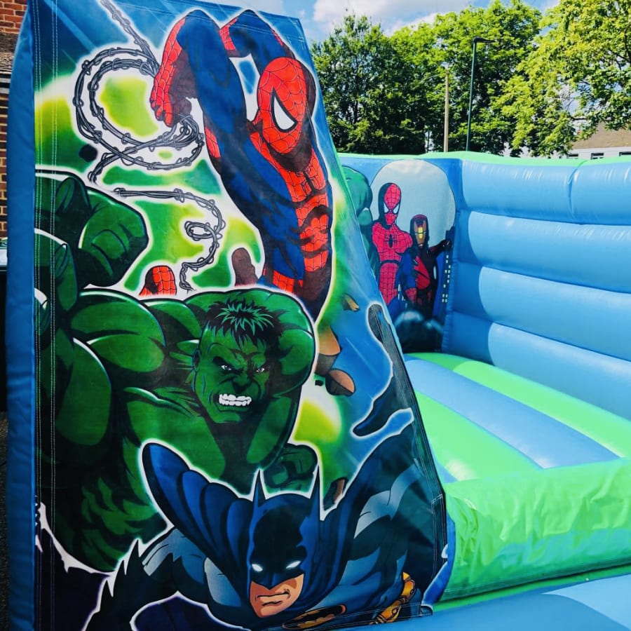 Added to our superhero range due to its low height of just 7ft high. There is no need to worry about indoor bookings where the chilling is low or hanging lights exist as we have yet to find a venue we cannot fit this low height superhero inflatable in!