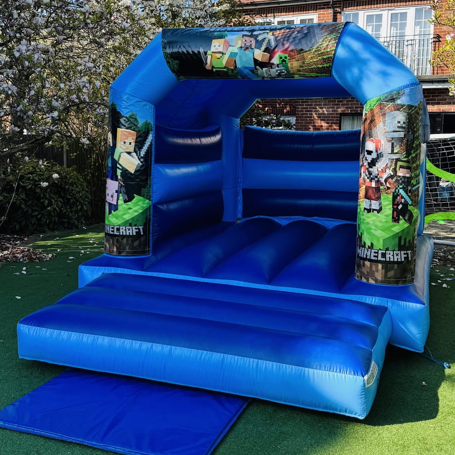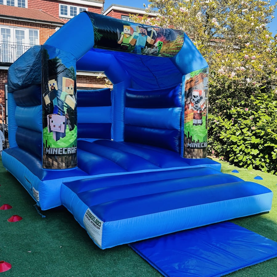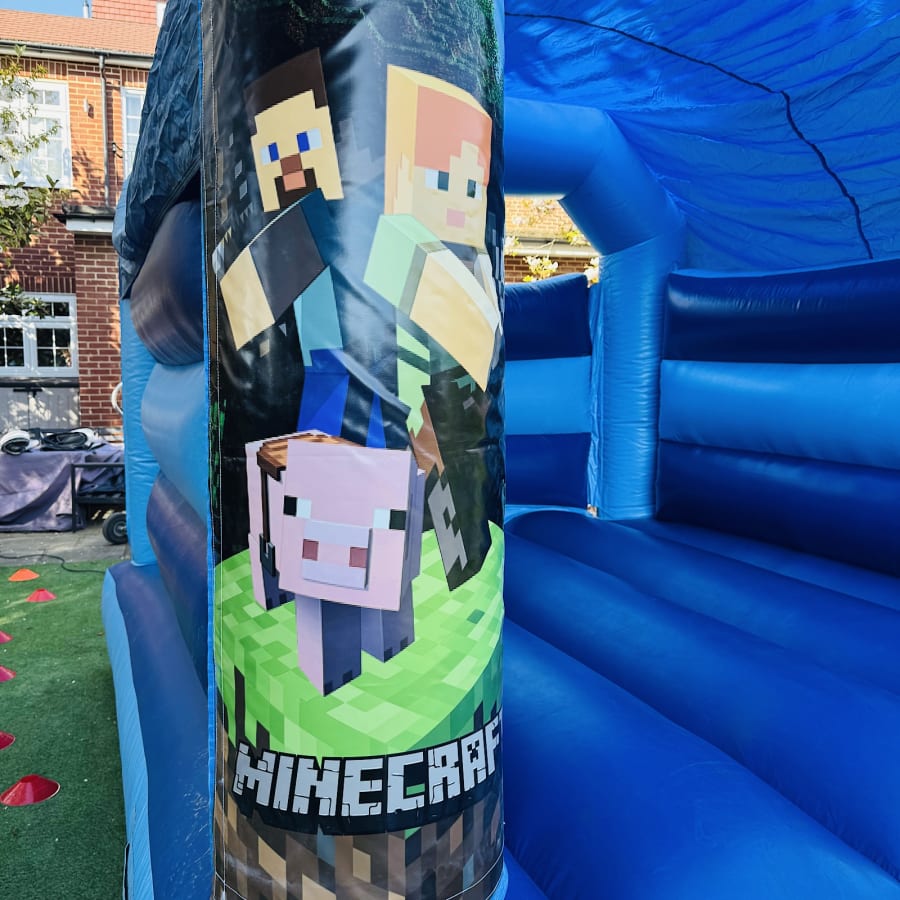 Meet Alex, Ari, Efe and the Dragon Slayer with this super cool Minecraft themed pink bouncy castle