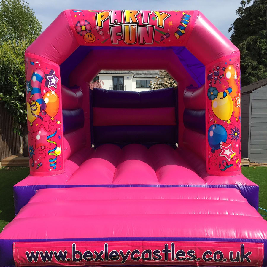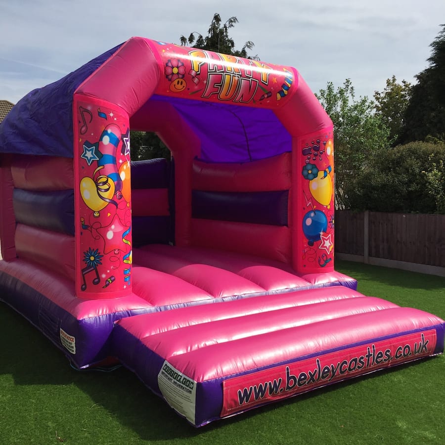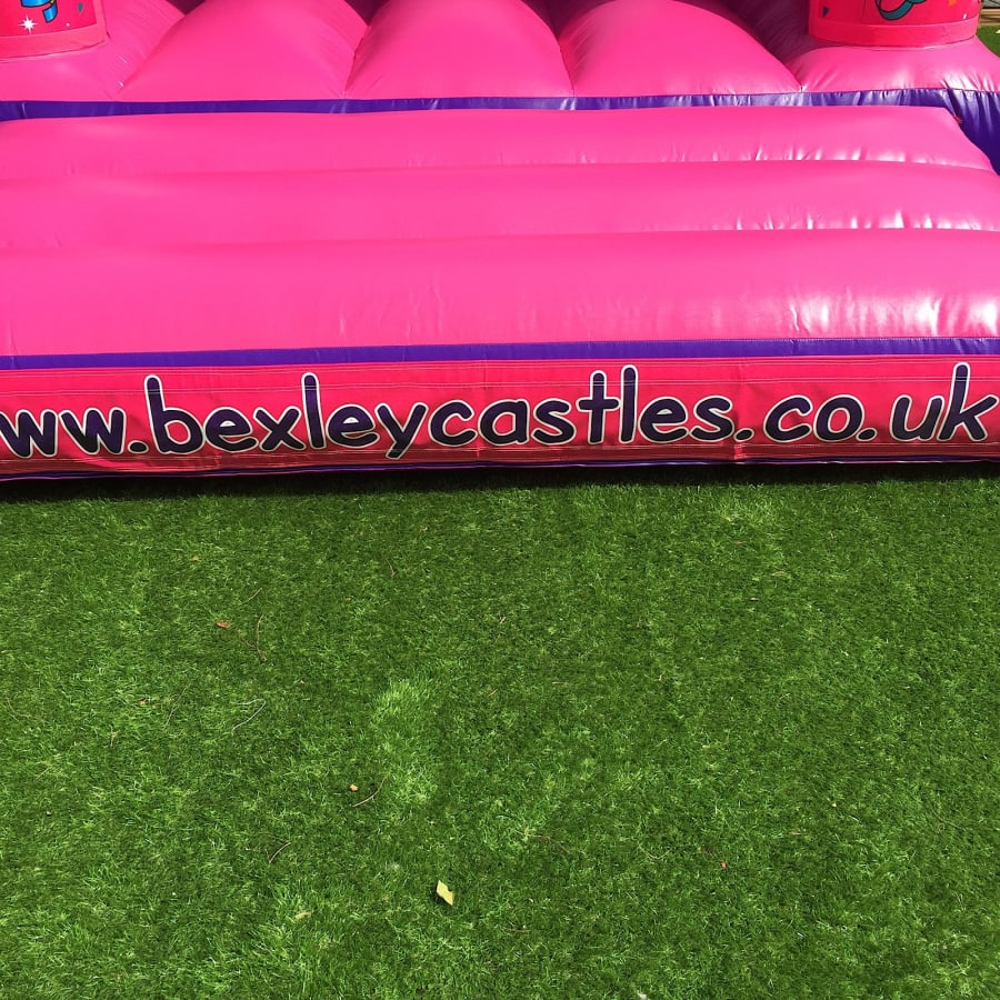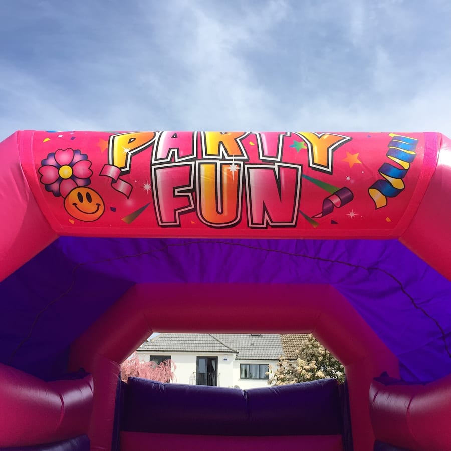 Super new pink colour coded bouncy castle with built in shower cover.