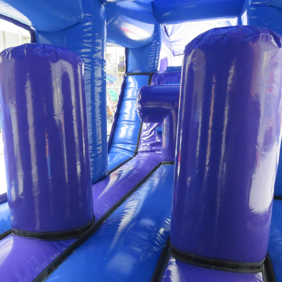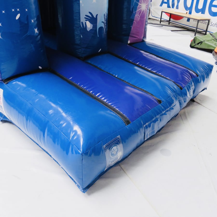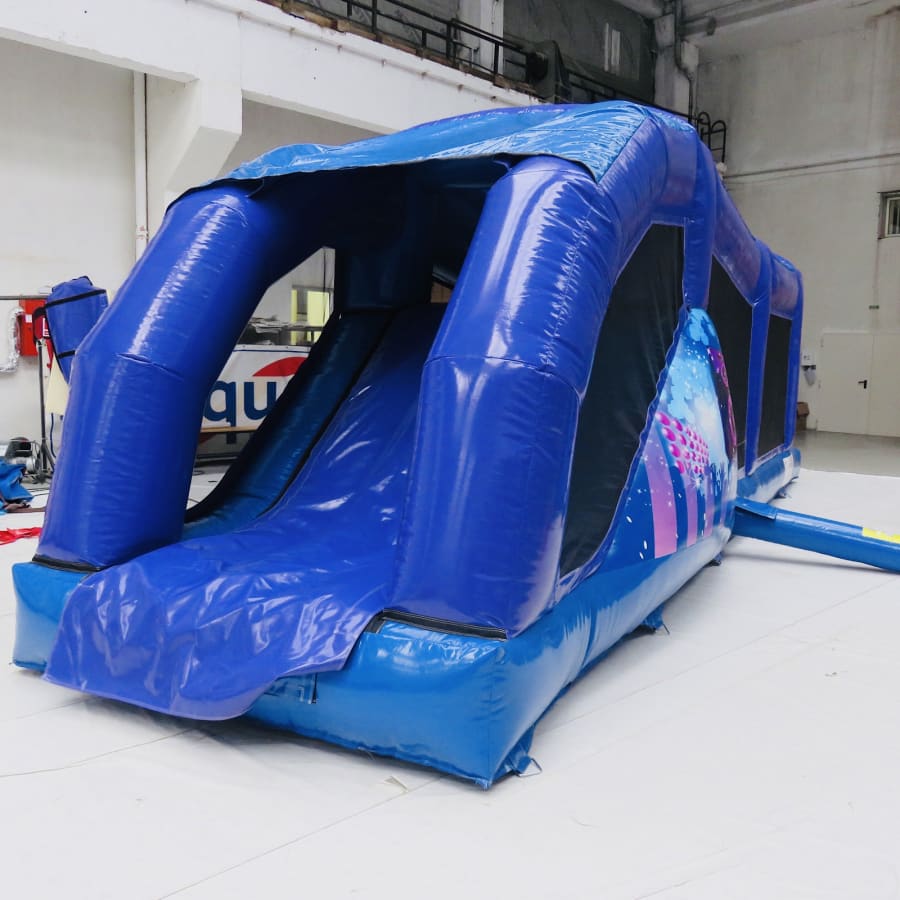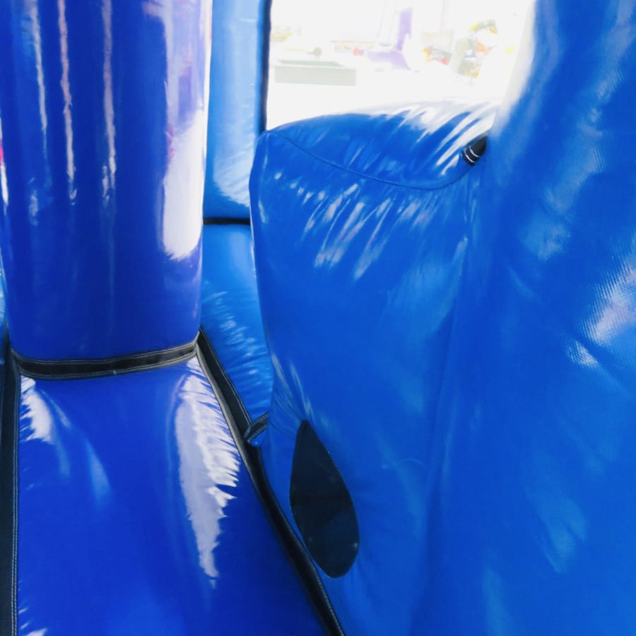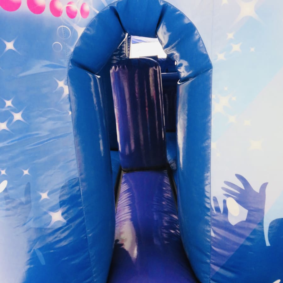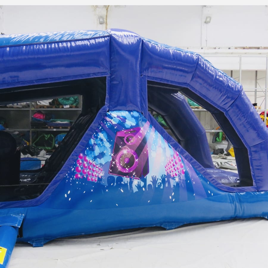 An exclusive to Bexley Castles - we designed this in collaboration with the manufacturer - this obstacle course is a high quality and visibly impressive inflatable. For extra fun the slide platform, standing at 6ft, is higher than any 1 part obstacle course previously built.Inside combines tunnels, biff bash, T-Bars, a climb and then the slide finale where mats will be set up for landing. The artwork is in keeping with our other disco products and all colour coded. If that wasn't enough this fantastic units comes with a disco light and 12" skytec bluetooth speaker so just connect up your device, (phone or tablet) and bounce away while listening to all the latest songs from your playlist or Spotify or YouTube.