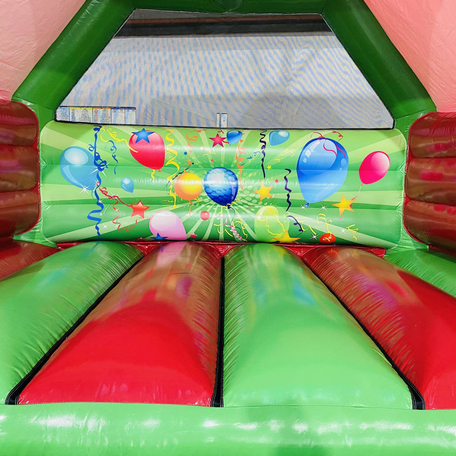 Green & Red Party A frame with sewn in shower cover and rear screen to avoid users climbing over the walls. Perfect for family gatherings!