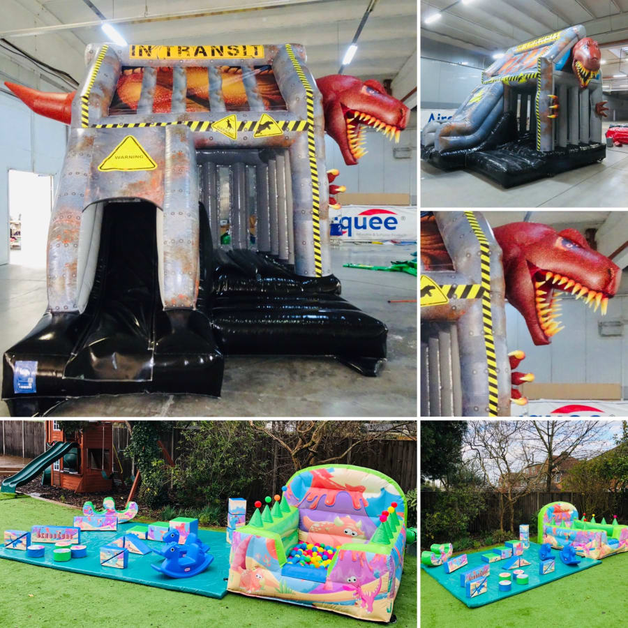 Dino Soft Play, Air Juggler & Cage Bounce N Slide
