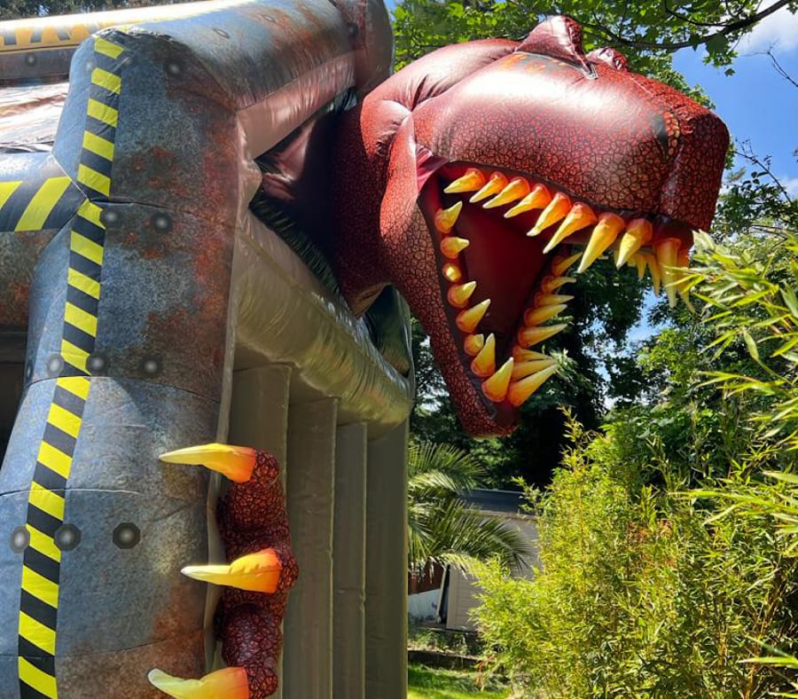 • Dino Air Juggler measuring 6ft W x 8ft L x 4ft H including 1000 play balls. (returnable deposit is taken on delivery for the balls)
