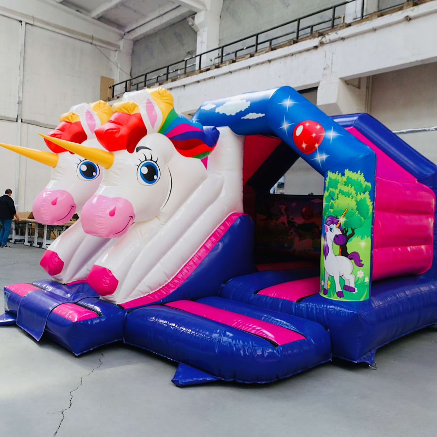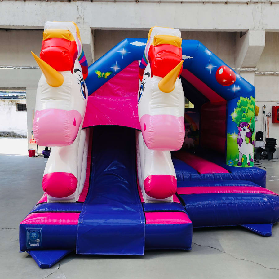 - Unicorn air juggler measuring 6ft W x 8ft L x 4ft H including 1000 play balls. (Small returnable deposit is taken on delivery for the balls)