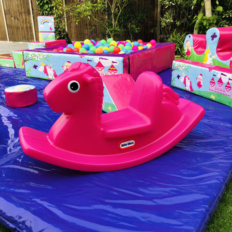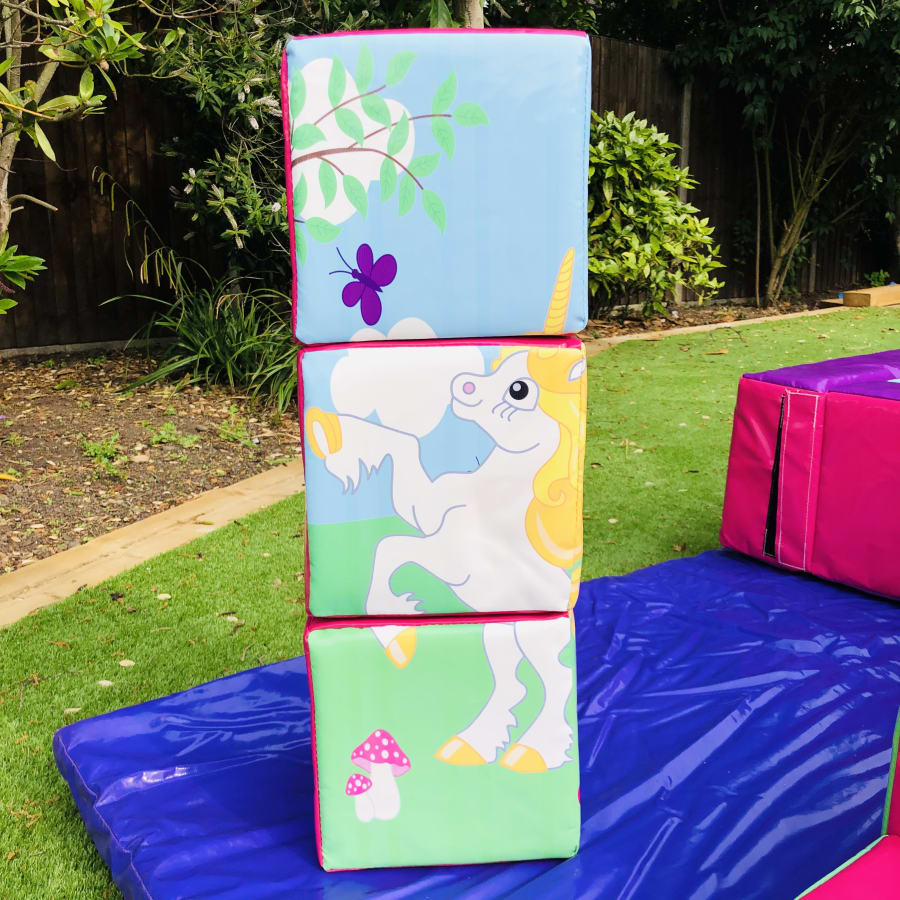- 18 pieces of Unicorn themed soft play comprising of triangles, slopes, squares, steps, puzzle cubes and stepping stones.