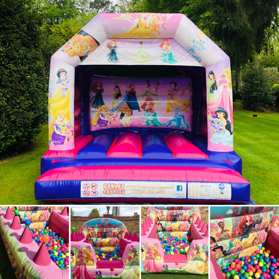 • Princess themed air juggler ball pond 6ft W x 8ft L x 4ft H - Princess themed ball pond with 'floating balls' on either side and a deep filled ball pond to dive into. There is a small deposit taken upon set up which is returned provided all the balls are bagged up by collection.