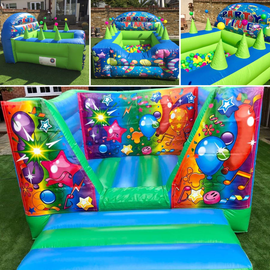 Whats Included?: Chosen products, electrical blower, 25 metre extension lead, stakes (weights if inside), mats if specified, delivery, set up and collection.