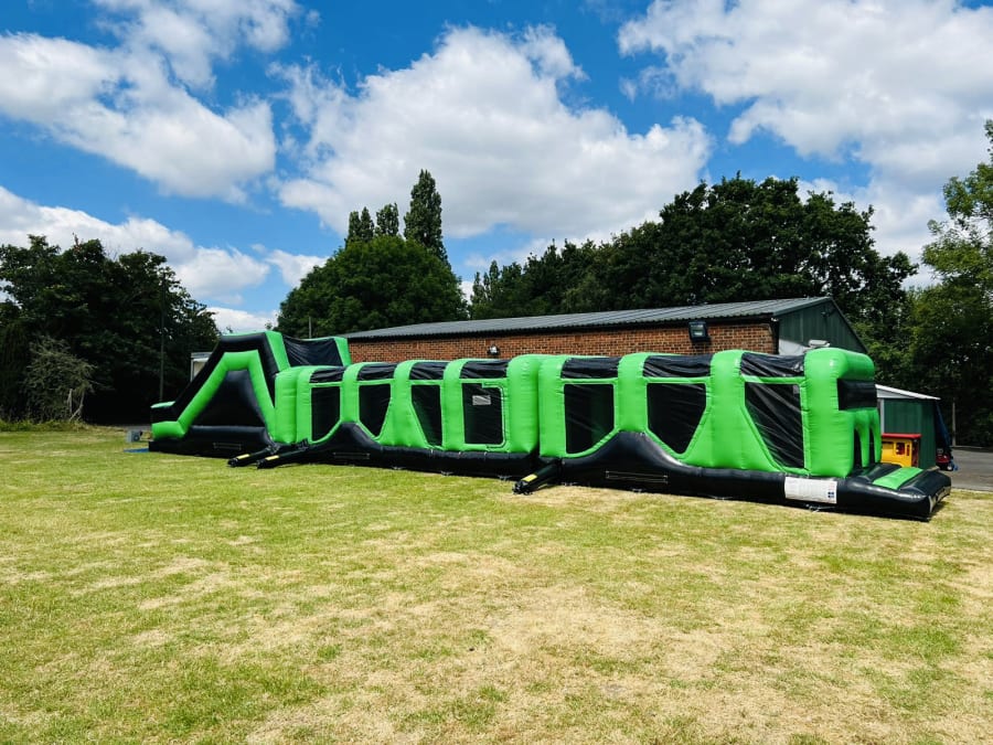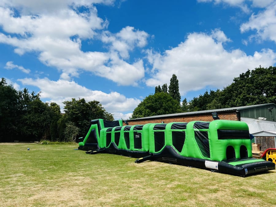 A good option for school inflatable days or large private events combining the thrill of a large slide with the challenge of our ultimate 70ft Assault Course.